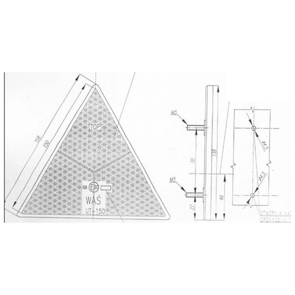 Comprend : triangle réfléchissant, vis, écrous et rondelles.