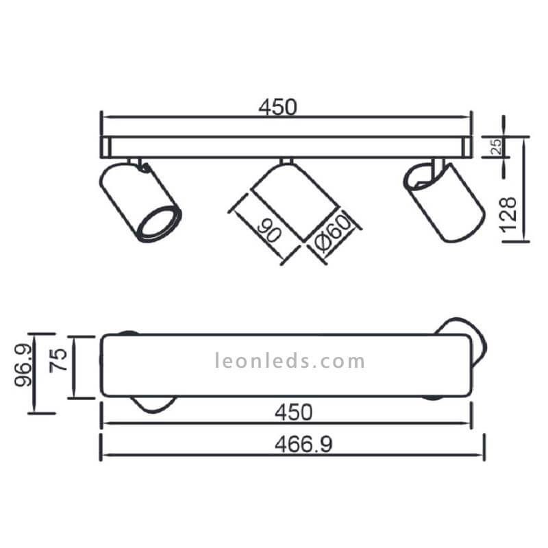 Réglette avec 3 spots orientables 45 cm Sal 3xGU10 de la série Sal de Mantra avec 2 couleurs disponibles :