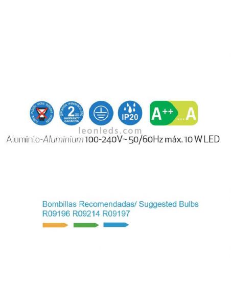 Son installation est recommandée uniquement à l'intérieur car il dispose d'une protection de niveau IP20 contre l'eau et la saleté. Ses projecteurs sont inclinables et orientables à 360º , ce qui permet d'orienter indépendamment chaque source de lumière vers la zone qui en a le plus besoin, en personnalisant nos décorations lumineuses grâce à sa lumière d'accentuation qui permet de mettre en valeur des objets dans les décorations, tels que des meubles, des vases ou peintures. C'est le produit parfait pour obtenir un éclairage élégant et fonctionnel, par exemple au niveau des têtes de lit ou comme éclairage dans les zones de lecture.