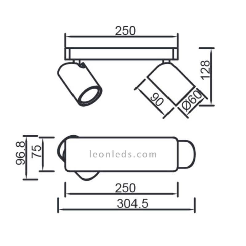 Bande de plafond avec 2 spots orientables 360º- 25 cm Sal 2xGU10 de la série Sal de Mantra avec 2 couleurs disponibles :