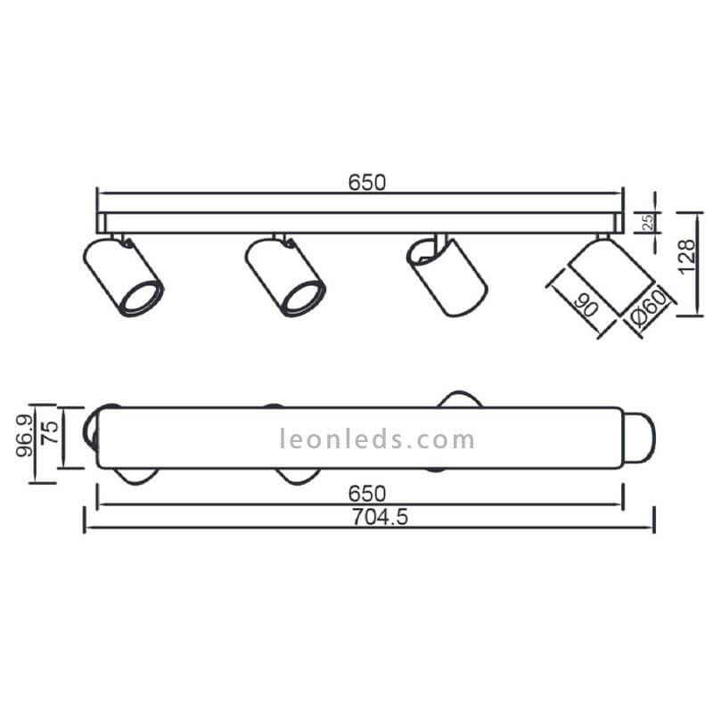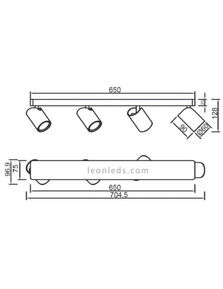 Réglette de plafond avec 4 spots inclinables 65 cm Sal 4xGU10 de la série Sal de Mantra avec 2 couleurs disponibles :