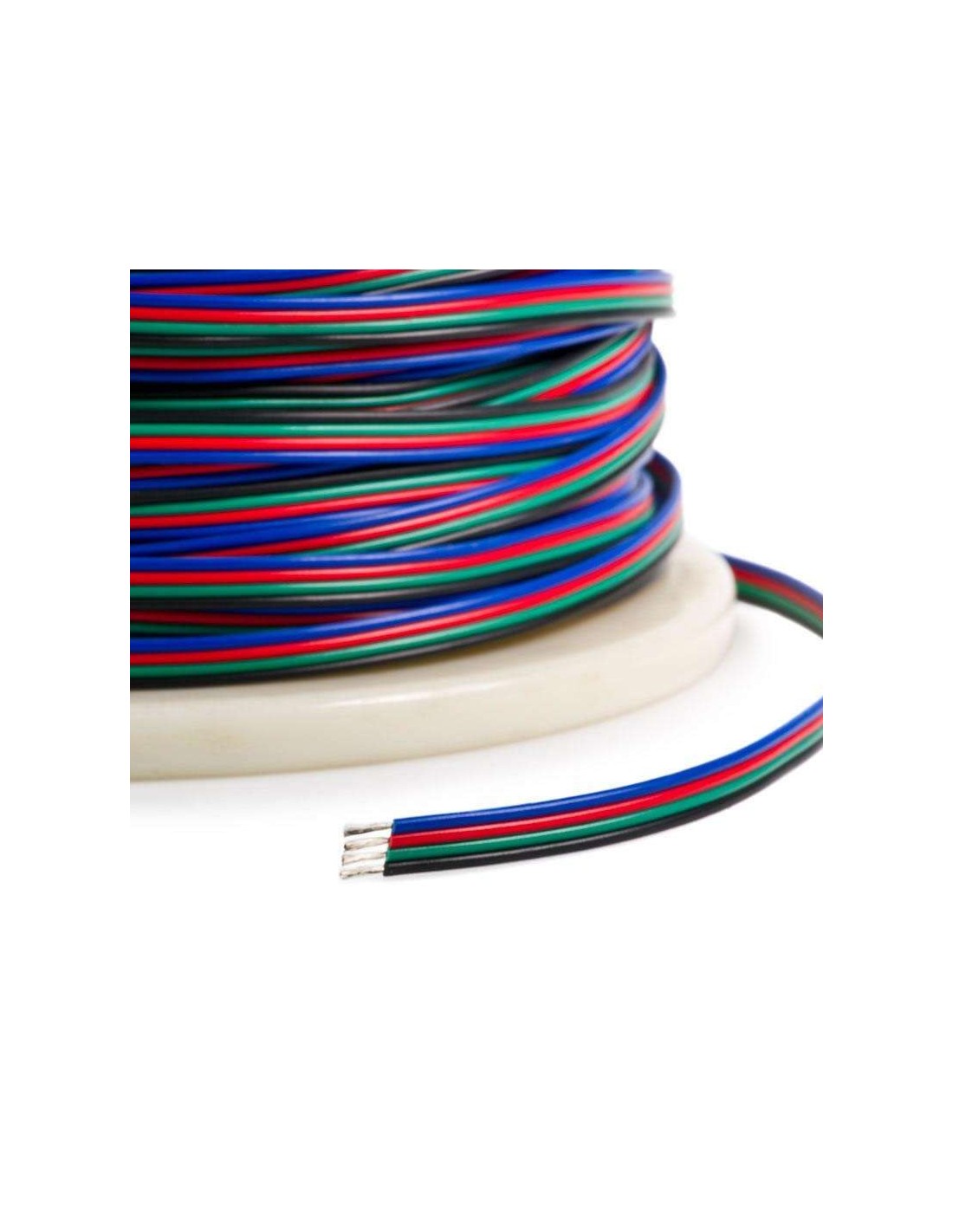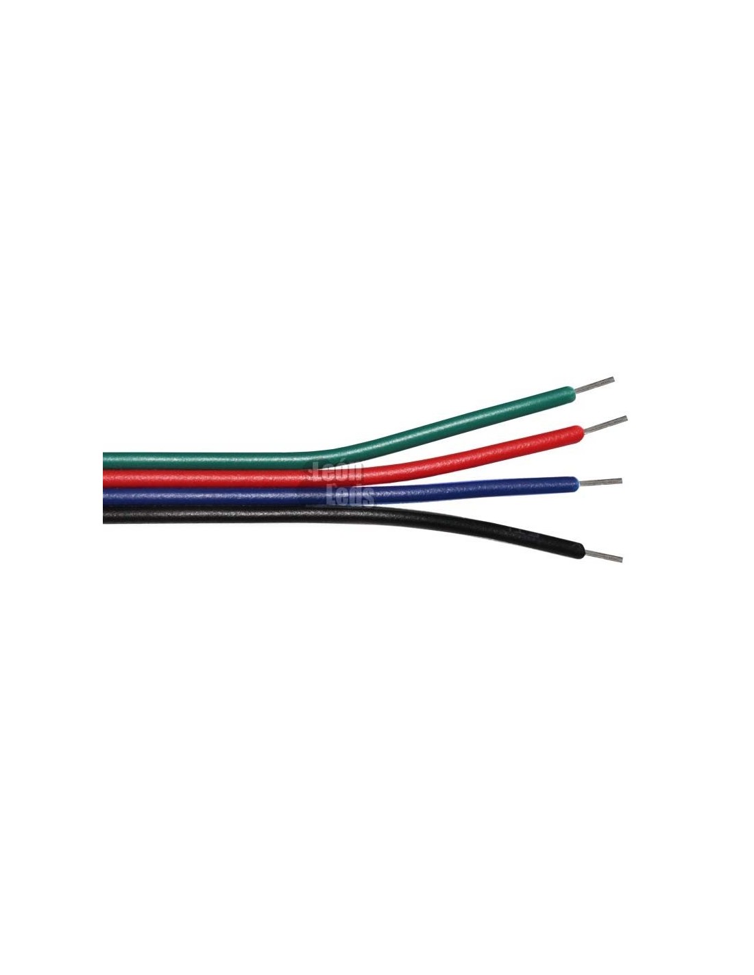 Câble à 4 fils spécialement conçu pour le raccordement de rubans LED RGB (4 fils vert, rouge, bleu et noir). Disponible en rouleaux ; choisissez celui qui vous convient. Câble RGB haute qualité.