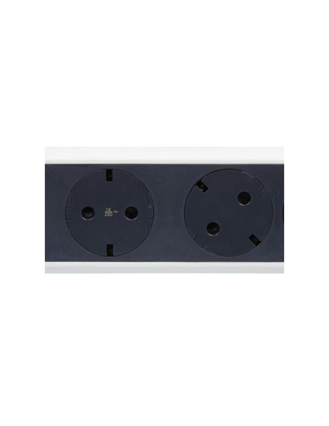 La base multiple dispose d'une prise avec un angle de 90º pour pouvoir connecter un transformateur sans bloquer une autre prise. Le reste des plans est orienté à 45°. Il dispose d'un interrupteur ON/OFF lumineux en bleu et de plusieurs possibilités de fixation : sur un mur ou une surface à l'aide de vis ou d'une bride (non fourni dans le pack). Câble PVC 3G blanc de 1,5M de long et 1,5mm² de section. Design et qualité exclusifs de Legrand. Couleur blanc et gris foncé.