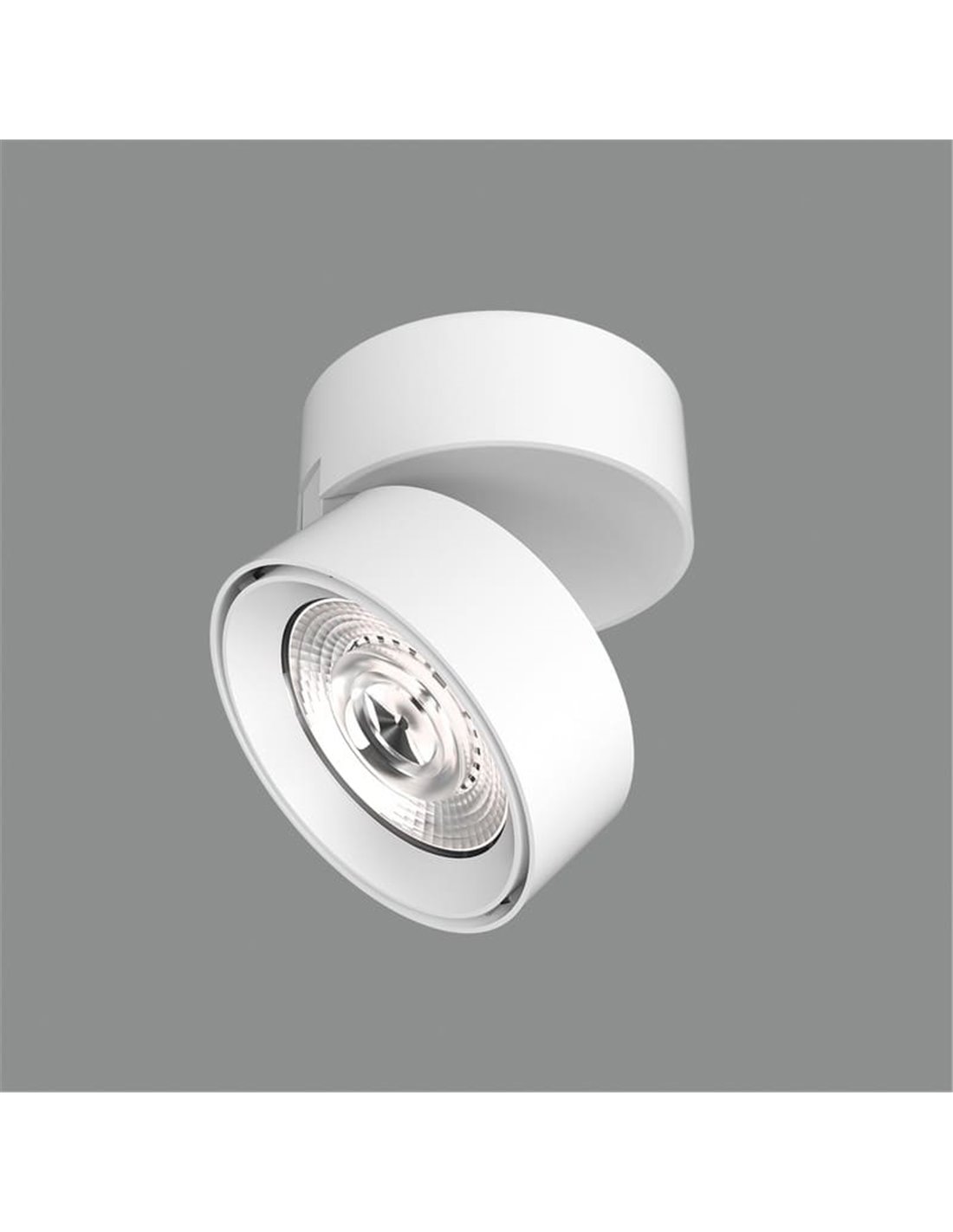 Plafonnier LED COB MAKO orientable en blanc texturé, avec 20W, 3000K et 1875lm. Idéal pour éclairer avec style et précision.