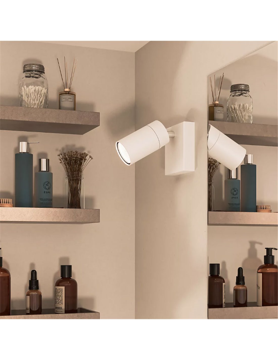 Le spot individuel pour salle de bain IDRIS est la solution parfaite pour ceux qui recherchent un éclairage de qualité dans les espaces humides. Conçu pour être utilisé aussi bien au plafond qu'au mur, ce spot allie un design minimaliste à une élégante finition blanche, s'adaptant à tout style de décoration de salle de bain.