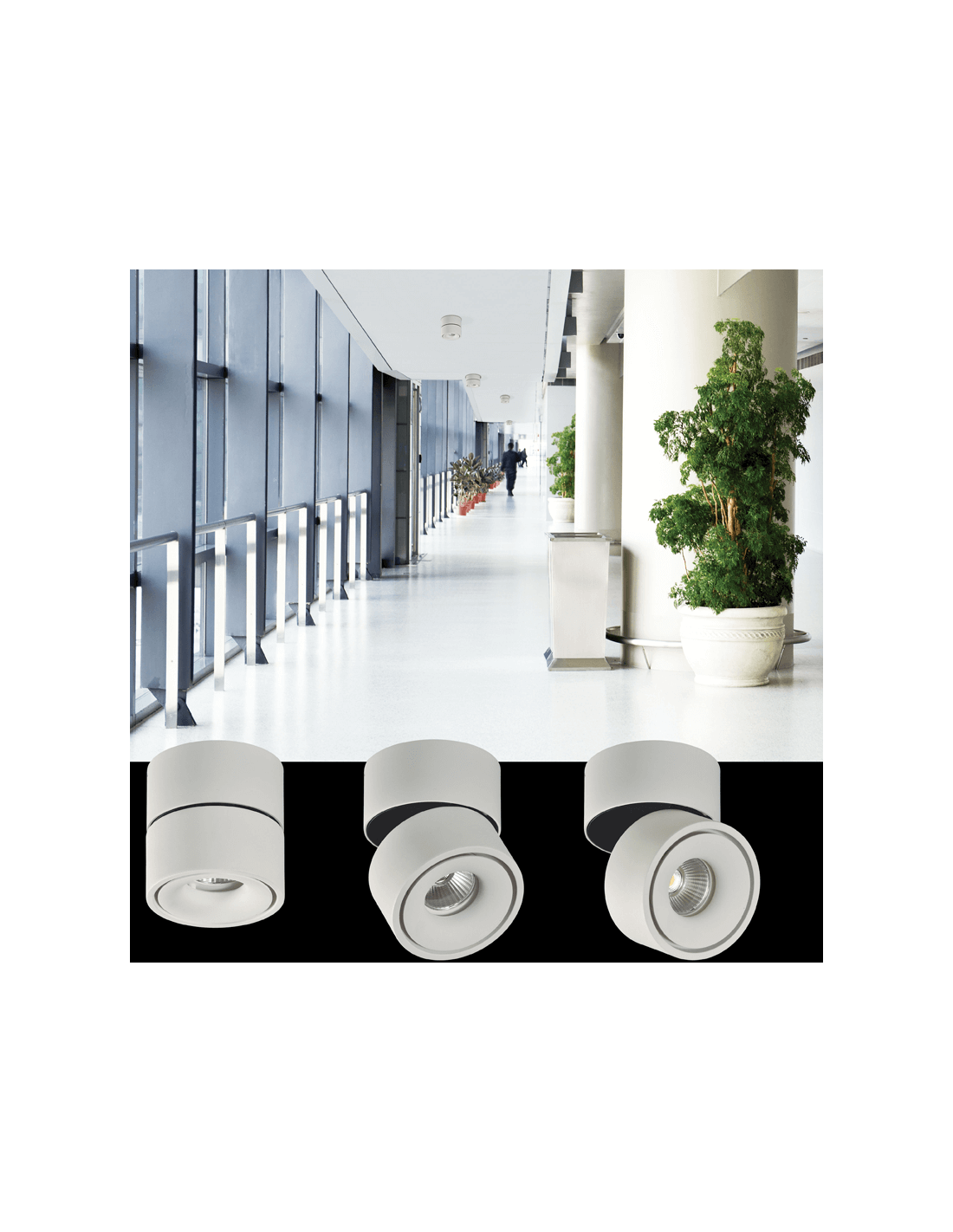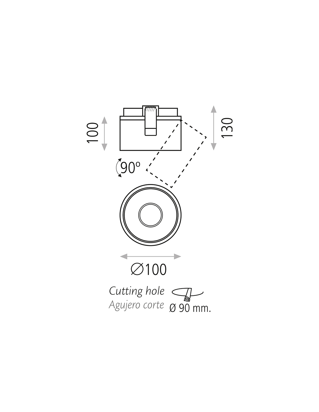 Il offre un diamètre de 100 mm et une plage d'orientation de 90 degrés, ce qui, associé à la possibilité de choisir la finition, nous permet de personnaliser entièrement notre éclairage intérieur.