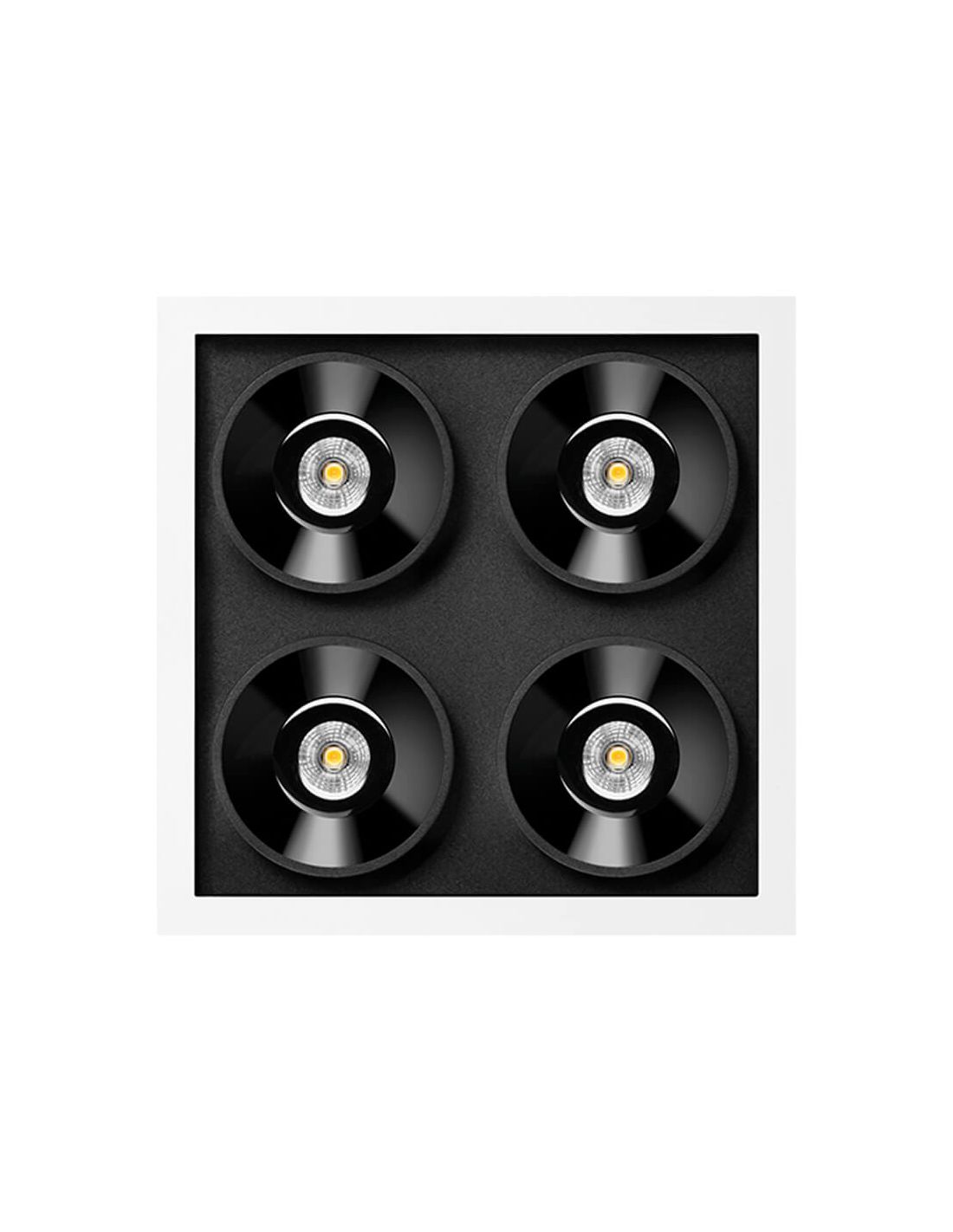 Le BLACK FOSTER REC 2x2 SPOT 19º, avec sa finition intérieure noire et son cadre blanc, allie design technique et contrôle professionnel via le protocole DALI.