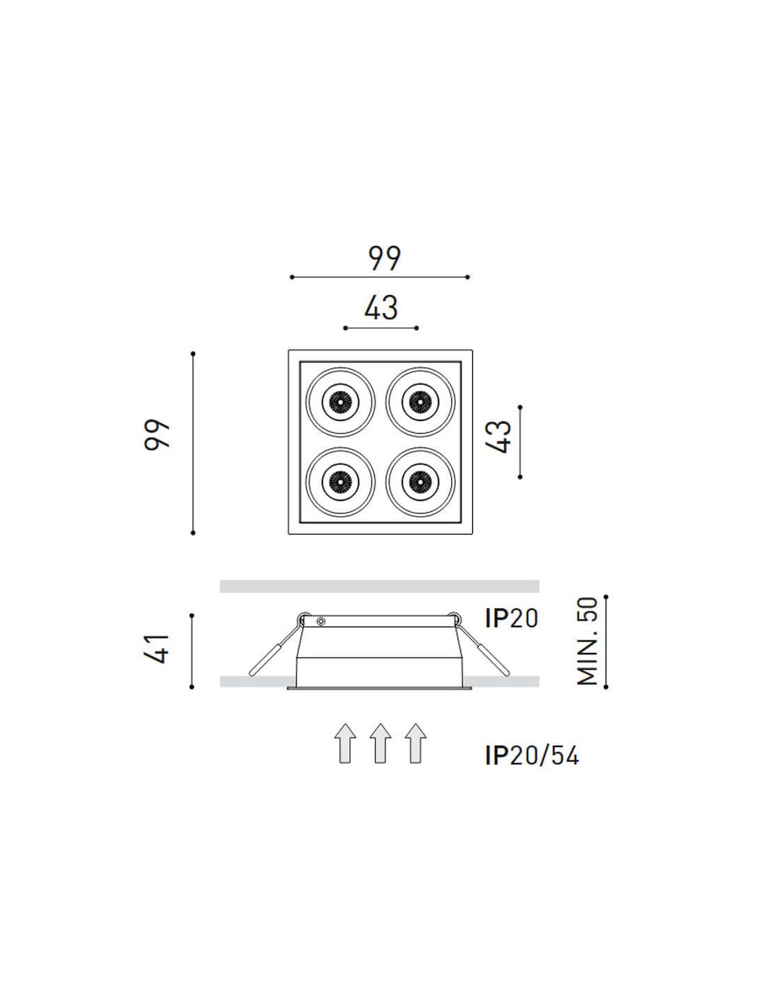 Le BLACK FOSTER REC 2x2 SPOT 19º avec sa finition intérieure noire et son cadre extérieur blanc allie esthétique architecturale et compatibilité avec la régulation traditionnelle Phase Cut (TRIAC).