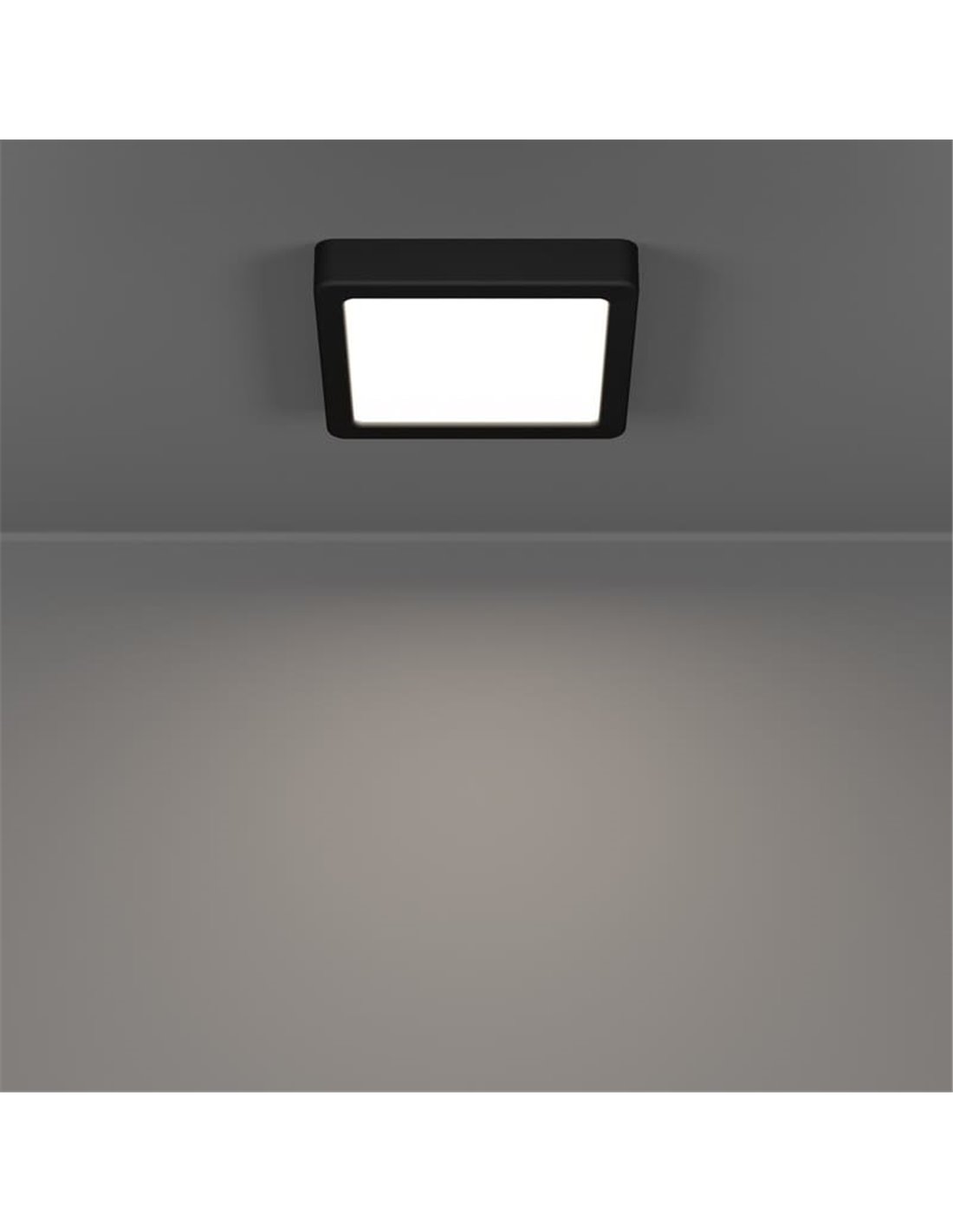 Downlight LED carré en saillie 150x150mm noir FUEVA 6, CCT 2700-6500K, 6,3W 720Lm, IP20 . 6,3W et 720 Lm, lumière dimmable 2700K – 4000K – 6500K. Dimensions : 150x150x28 mm. Protection IP20.