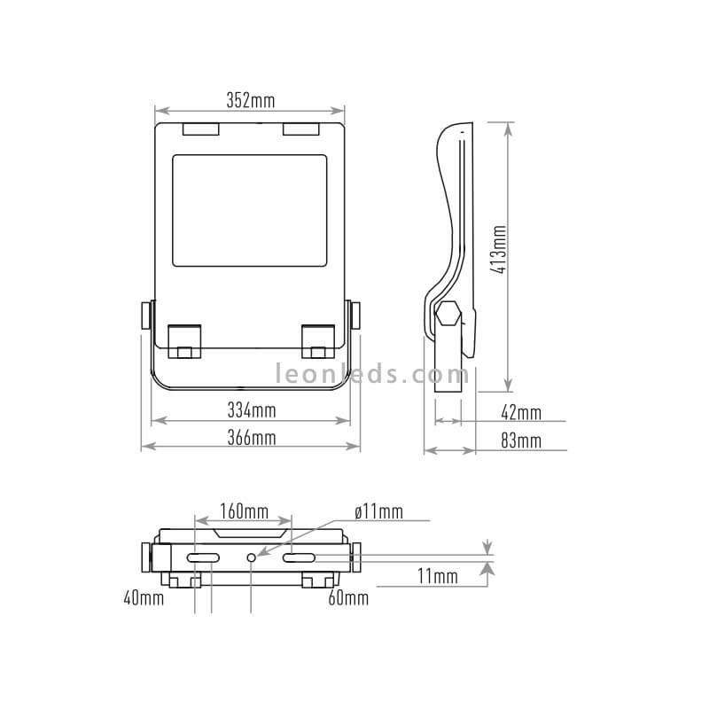 Projecteur Led d'extérieur avec une puissance de 100W modèle Cree CFL , une intensité lumineuse de 10 800Lm avec une tonalité de lumière naturelle de 4000K et un degré de protection contre l'humidité et la poussière de IP66, comprend un parasurtenseur de 10Kv .