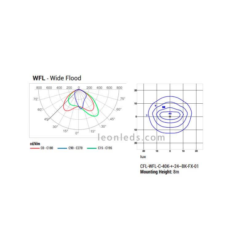 3.- Wide Flood WFL : Type d'optique qui éclaire en flood, la plus utilisée et la plus courante.