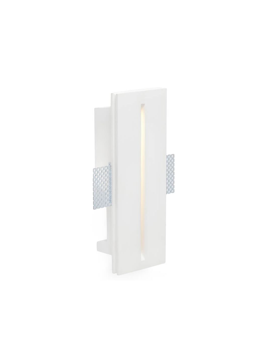 Applique murale encastrée LED linéaire PLAS en plâtre blanc mat au design linéaire et minimaliste . LED haute puissance 1W avec une température de couleur chaude de 3000K . Découpe encastrée 231x85mm , lumière d'accentuation douce (112 lm), dimmable et sans driver inclus.
