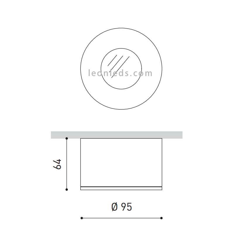 Spot rond avec technologie LED intégrée de couleur Blanc à l'extérieur (RAL 9016) , une puissance de 20W, un angle de faisceau de 45º, un CRI>90, un UGR>19 et est disponible en 3 tons de Clair, Très Clair Warm 2700K, Warm Light 3000K et Natural Light qui offrent respectivement une intensité lumineuse de 1500Lm, 1600Lm et 1660Lm.