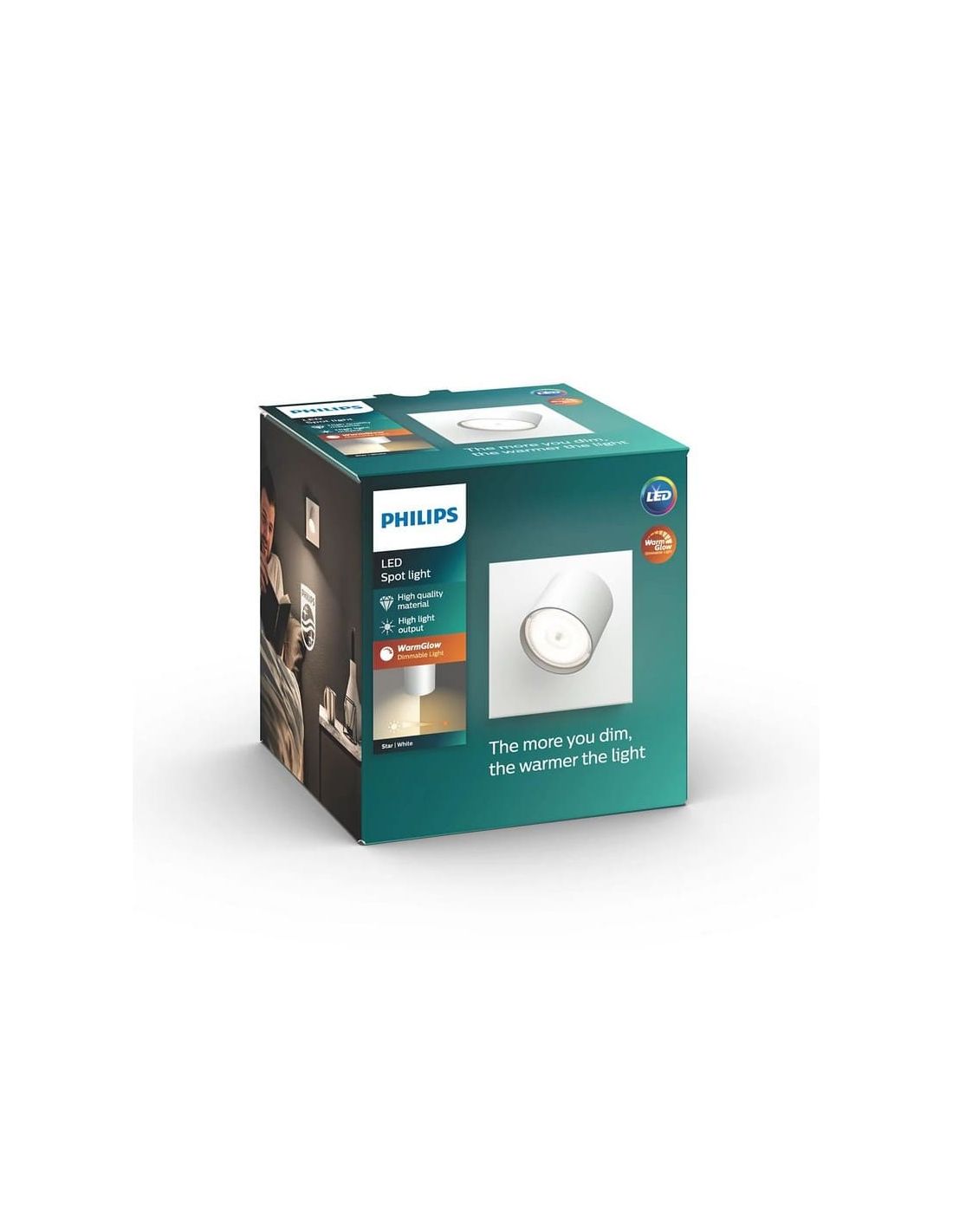 Le spot LED STAR Blanc offre polyvalence et confort visuel. Grâce à la technologie WarmGlow à intensité variable , basculez facilement entre une lumière fonctionnelle brillante et une lumière chaleureuse et confortable. Facile à installer avec ClickFix, conçu pour votre confort visuel.