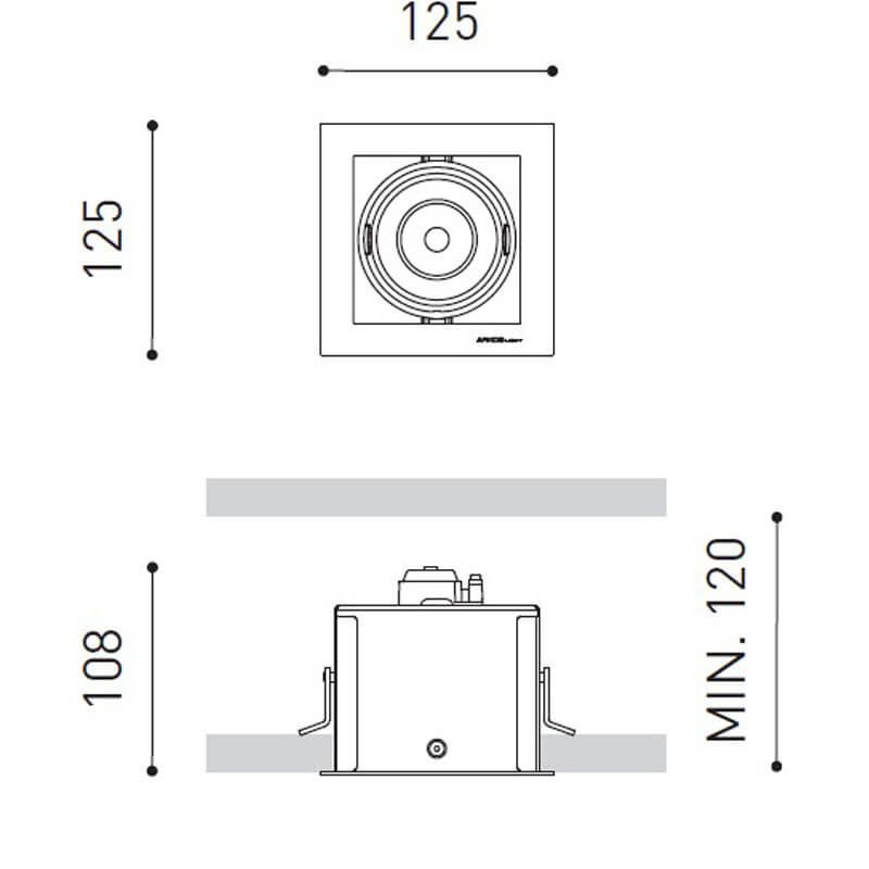 ArkosLight Mini Orbital Spotlight , un luminaire encastré au plafond de type cardan pour lampes de 111 mm (non incluses) qui prend en charge jusqu'à 7,5 W de LED