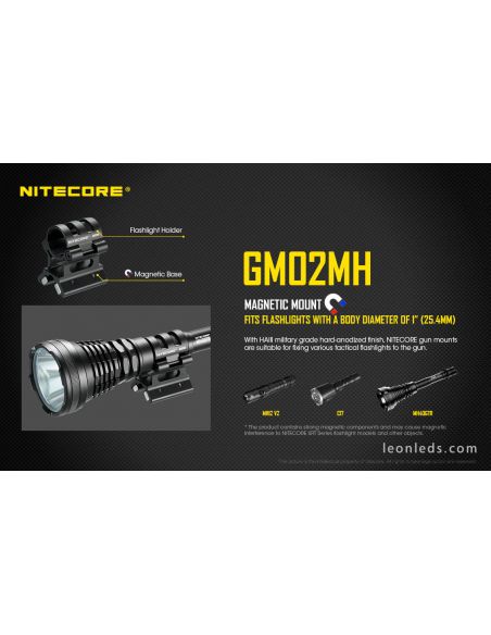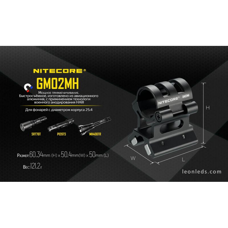 Le nouveau support Nitecore GM02MH dispose d'un support magnétique avec beaucoup d'adhérence et de protection pour éviter de rayer l'arme. Le matériau utilisé est de l'aluminium de haute qualité et très léger, valable pour les lampes de poche LED MH12 V2, C17 et MH40GTR, New P30.