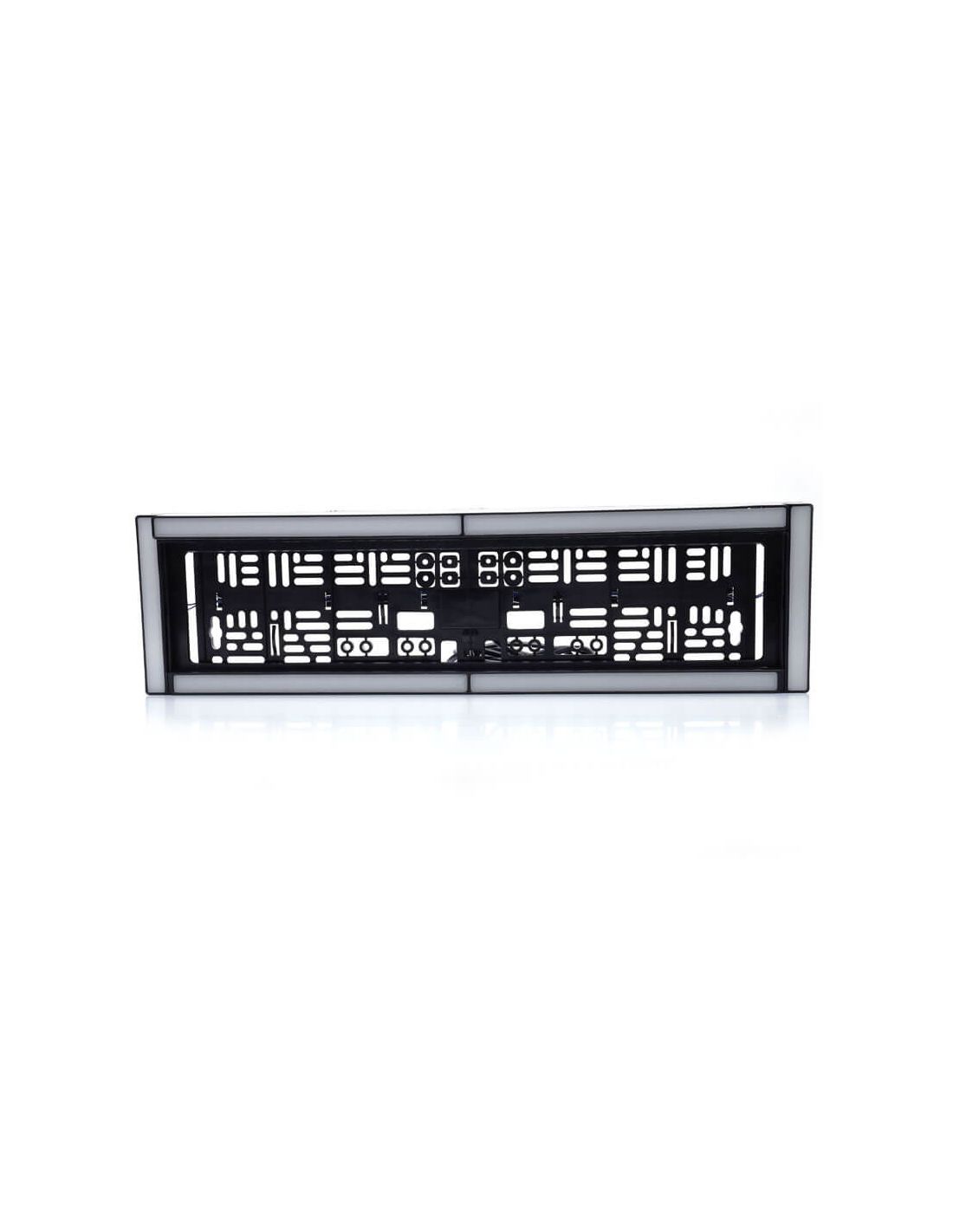 Support avec éclairage de plaque d'immatriculation LED homologué et 3 phares de travail WAŚ de 1 800 lm, compatible avec les véhicules 12 V et 24 V. Homologué, faible consommation et résistant aux conditions extrêmes.