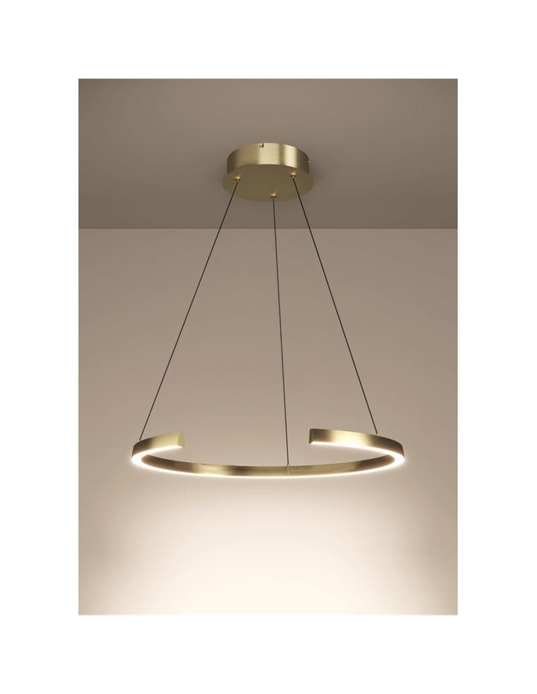 LABONETE est une suspension LED circulaire conçue pour offrir un équilibre visuel et un éclairage enveloppant. Sa finition dorée apporte une touche sophistiquée, ce qui en fait un élément décoratif idéal pour les salles à manger, les salons ou les espaces ouverts où l'éclairage définit le style.