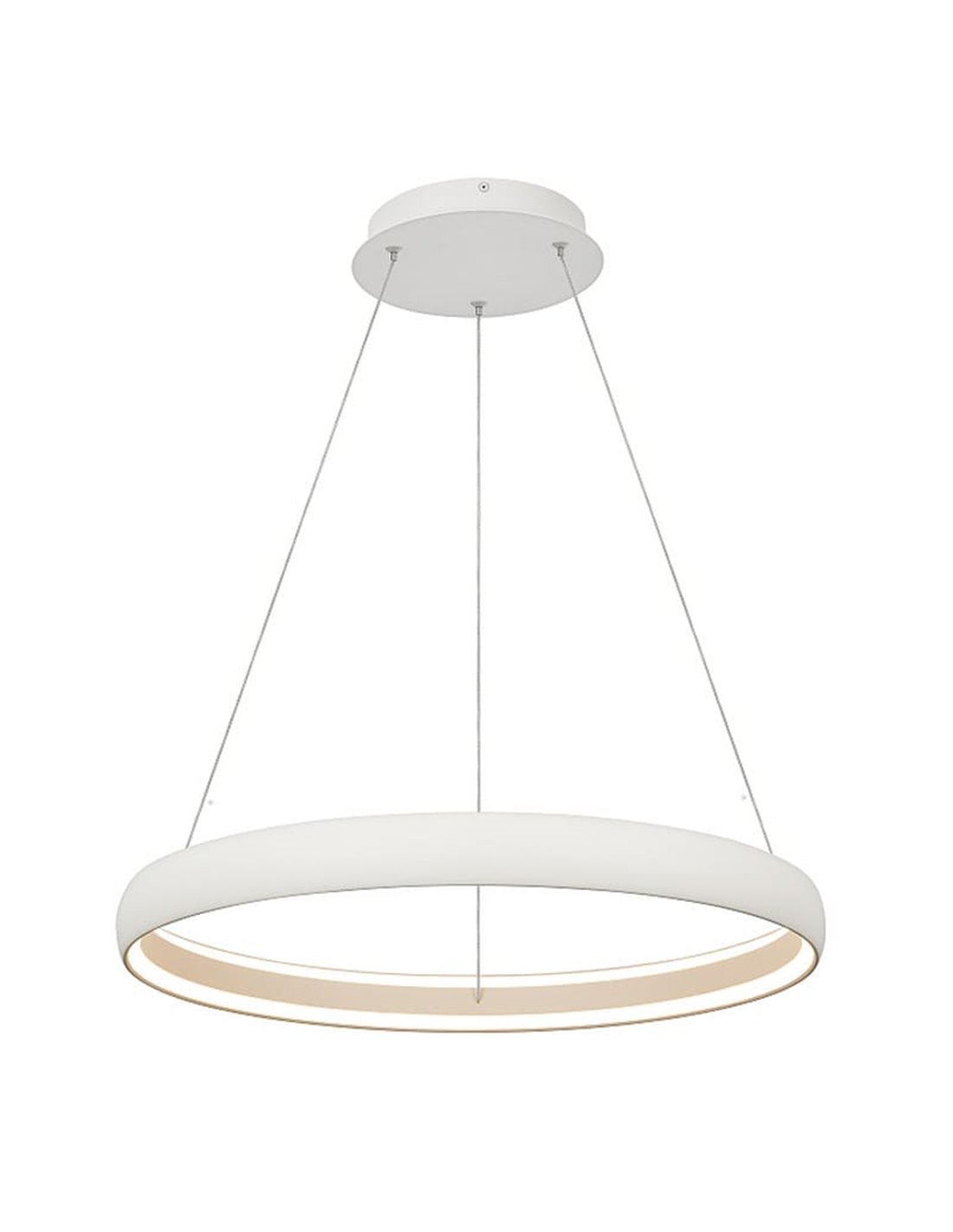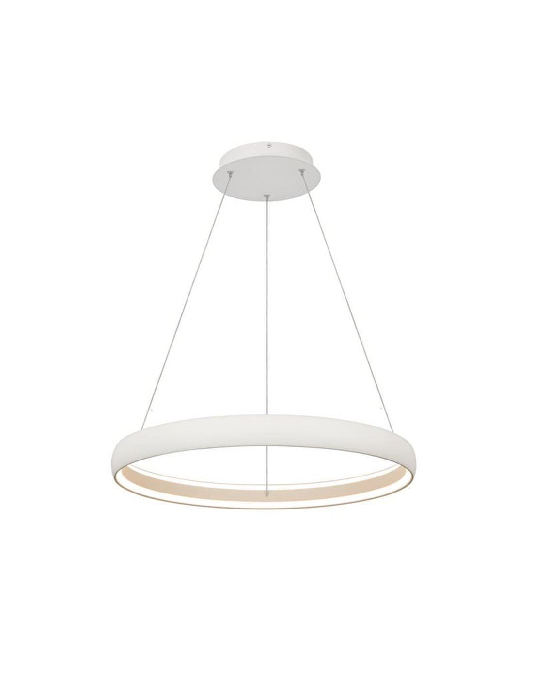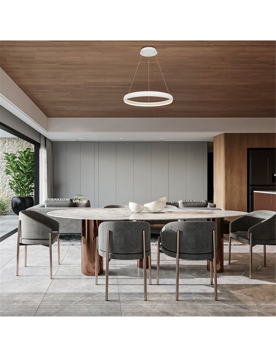 La suspension LED FLATS, avec son anneau unique et sa finition blanche, offre un éclairage chaud de 3 000 K et un flux lumineux de 5 290 lumens , idéal pour les salles à manger, les salons modernes et les espaces minimalistes. Son anneau LED de 58,7 cm de diamètre et son système de variation d'intensité TRIAC permettent de créer des ambiances chaleureuses et harmonieuses, le tout dans un design élégant et contemporain.