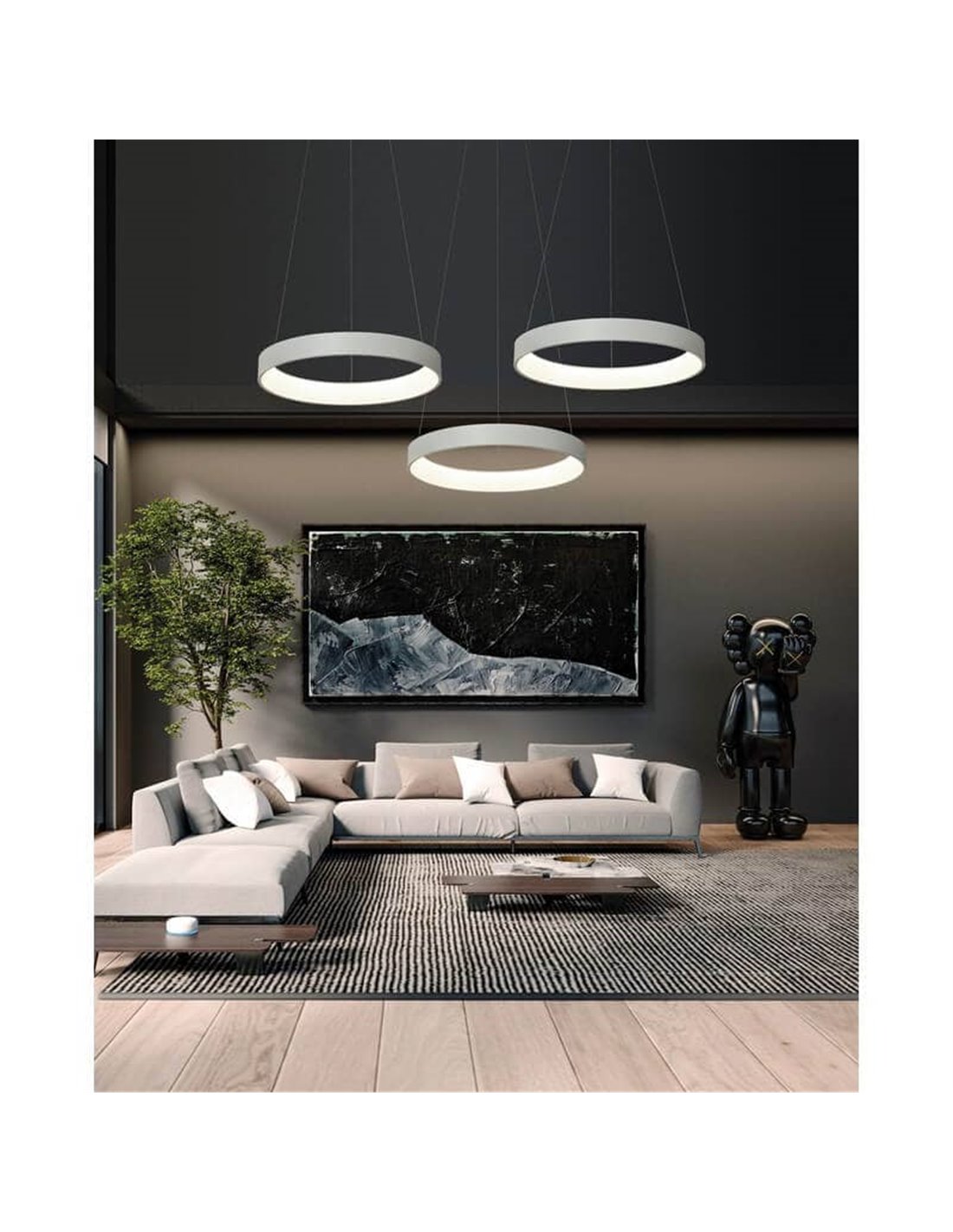 Suspension LED DILGA Ø 60cm Blanc/Noir Texturé, 48W 3730lm, 2700K-3000K avec interrupteur coulissant avec et sans Casambi