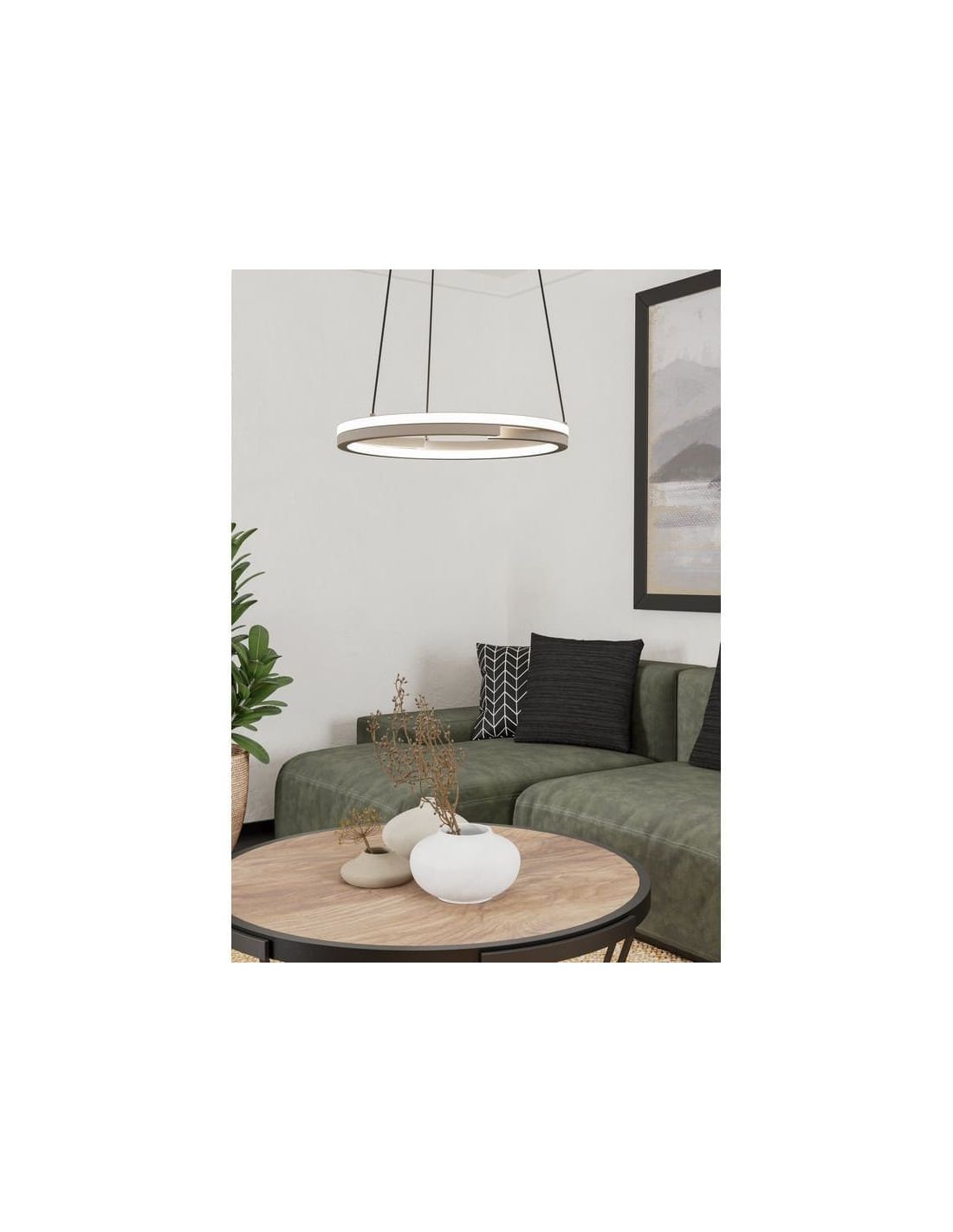 La suspension LED Eglo MEZZOMONTE 901824 se distingue par son design épuré et raffiné, avec son élément lumineux circulaire suspendu qui semble flotter dans l'espace. Sa finition couleur sable lui confère une esthétique chaleureuse et élégante, idéale pour les intérieurs contemporains et les ambiances minimalistes et accueillantes.