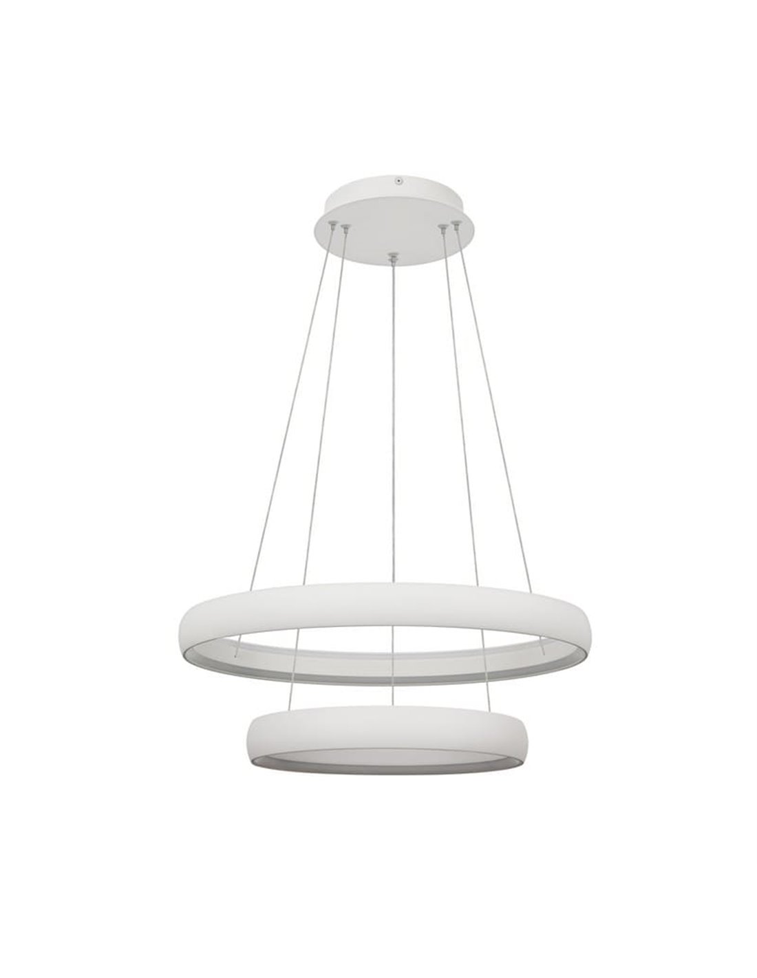 Le luminaire FLATS à 2 anneaux allie design moderne et haute performance grâce à ses LED de 70 W et 8 800 lumens . Ses anneaux de Ø 58,7 cm et Ø 39,5 cm, finition blanche, diffusent une lumière chaude de 3 000 K , dimmable par TRIAC , idéale pour les grands salons et salles à manger.