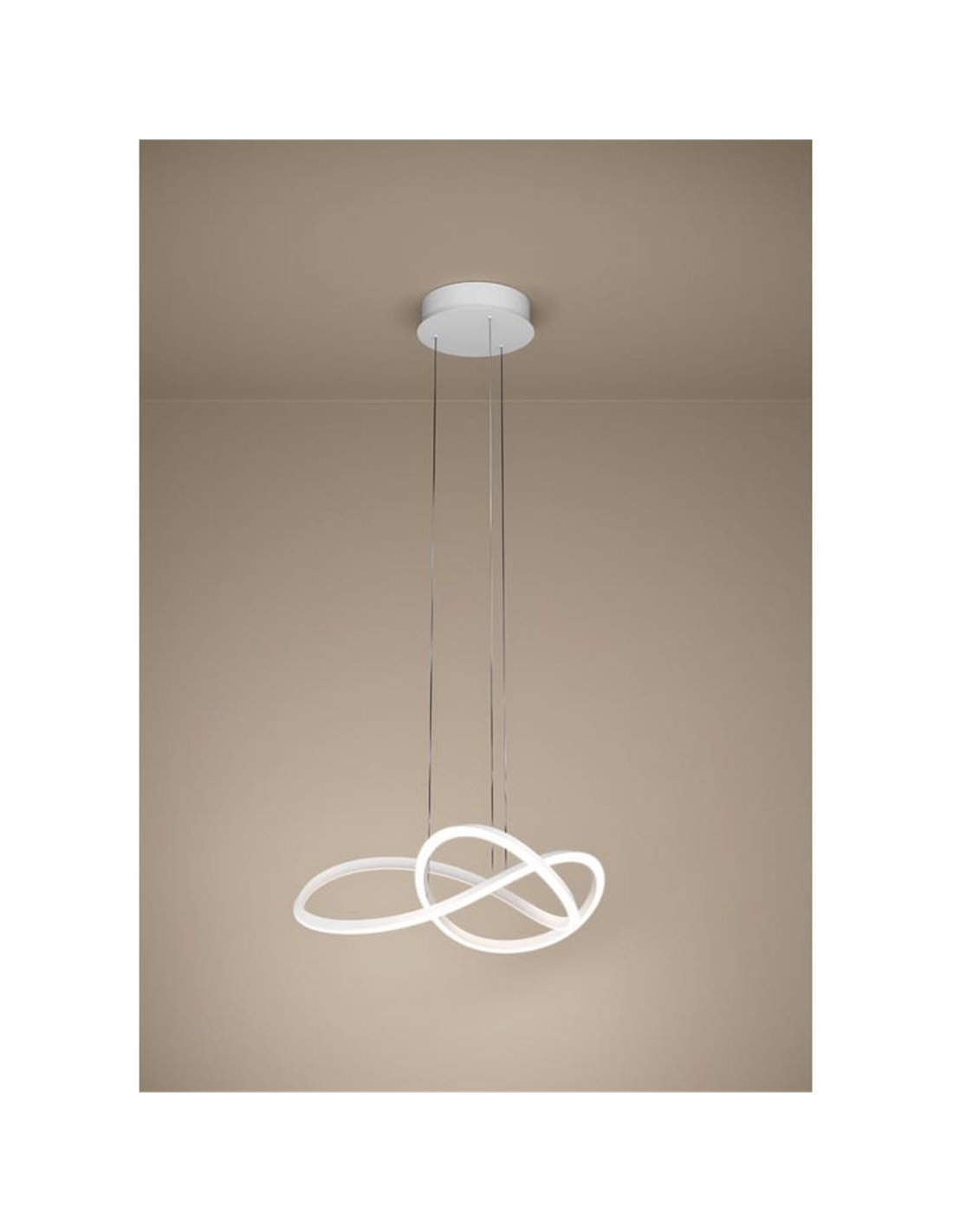RIAZA Ø830 est une suspension LED au design contemporain conçue pour Sa forme organique et fluide lui permet de s'adapter à l'utilisation réelle de l'espace. élément décoratif clé, idéal pour les tables à manger et les salons spacieux ou des espaces ouverts.