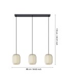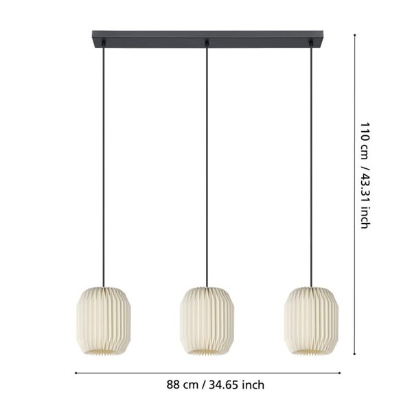 Lampe à suspension triple BELGRAVE par Eglo, avec trois abat-jour en papier blanc et structure en acier noir. Compatible avec les ampoules E27 (non incluses). Idéal pour ajouter une touche moderne et élégante à tout grand espace.