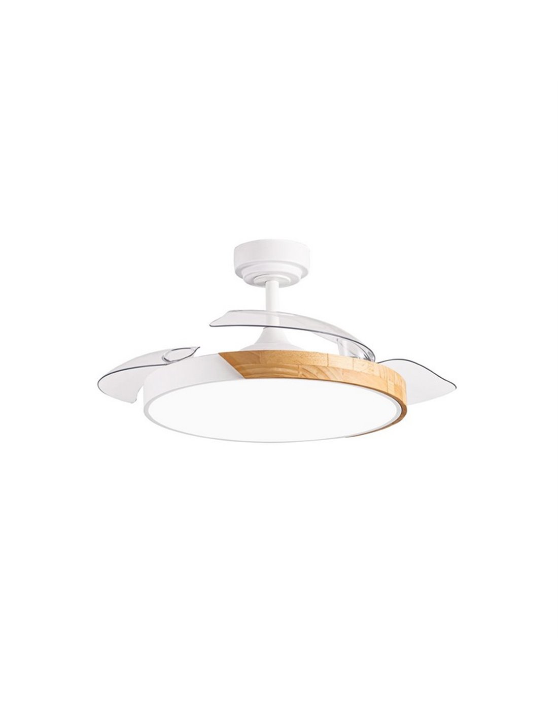 Ventilateur de Plafond LED Blanc et Bois TAORO : Doté de pales rétractables , ce ventilateur a une puissance de 72W et 7920Lm , offrant un éclairage CCT réglable. Idéal pour tout espace moderne.