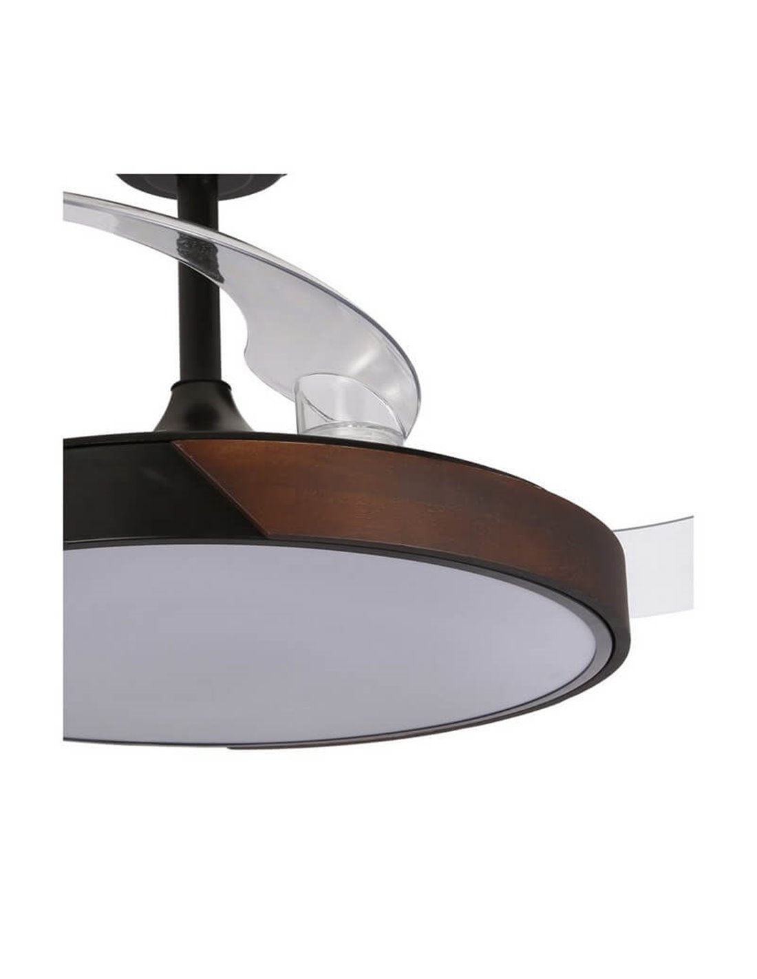 Ventilateur de Plafond LED TAORO Noir et Bois : Doté de pales rétractables , ce ventilateur a 72W et 7920Lm de puissance, offrant un éclairage CCT réglable. Idéal pour tout espace moderne.
