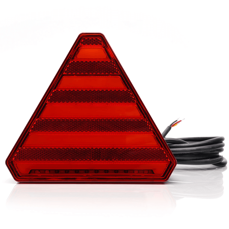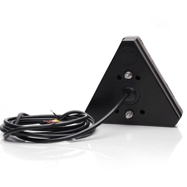Feu arrière à LED avec triangle valable pour les installations 12 volts et 24 volts avec 3 fonctions , comprend 200 cm de câble, peut être installé sans les supports qui offriraient une largeur de seulement 4,05 cm.