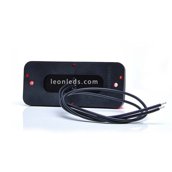 Troisième feu stop rectangulaire à LED Approuvé à l'arrière pour remorques, voitures ou camions. Il admet des véhicules de 12V à 24V, il est donc permis de l'installer dans des camions avec 24V et dans des voitures, des remorques ou des voitures avec 12V. Le code d'homologation de ce troisième feu stop est S3.