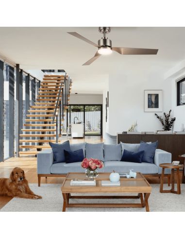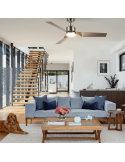 Ce ventilateur enregistre la mémoire d'allumage et comprend une télécommande. Vous pouvez rendre ce ventilateur intelligent en l'installant avec la télécommande intelligente . De plus, il convient aux plafonds inclinés avec un maximum de 15º et possède un niveau d'étanchéité IP20 qui protège contre les corps de dimensions supérieures à 12 mm.