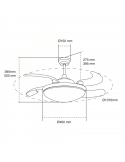 Ce modèle est livré avec un moteur à courant continu à 6 vitesses avec lequel vous pouvez économiser jusqu'à 70 % d'énergie par rapport aux ventilateurs à courant alternatif. Il dispose d'un diffuseur LED haute puissance de 36W et d'un flux de 4000 lumens, ce qui permet un contrôle de la température entre 3000ºK, 4000ºK et 6000ºK.
