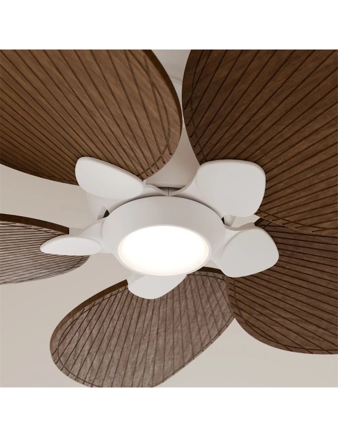 Ventilateur LED d'intérieur/d'extérieur ALMA L Ø132cm, 5 pales, blanc et bois foncé,...