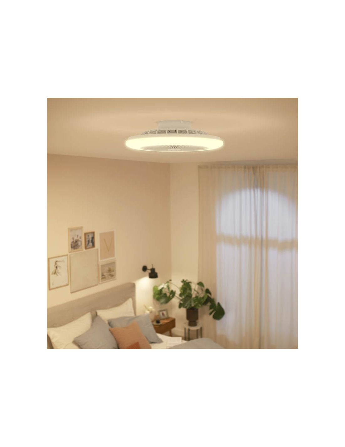Il offre un design fin et élégant qui lui permet de s'adapter à n'importe quelle chambre ou salon moderne et est conçu pour être durable, grâce à sa certification IP20 et sa durée de vie de 15 000 heures. Elle possède une température de couleur réglable de 2700K (chaud) à 6500K (froid) avec un flux de 4000 à 6000 lumens et une puissance de moteur de ventilateur de 48W. Cela signifie que vous disposerez d'un éclairage puissant avec une technologie qui le rend très confortable pour les yeux et avec une répartition homogène .