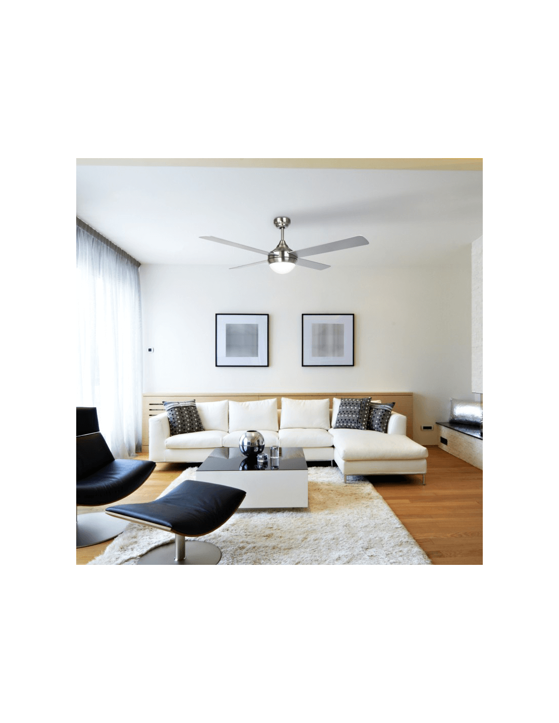 Sa finition nickel permet d'introduire très facilement le ventilateur Baloo dans les intérieurs modernes. Son moteur à courant continu à 6 vitesses est particulièrement apprécié, ce qui permet un fonctionnement ultra-silencieux et, en plus, une très faible consommation.