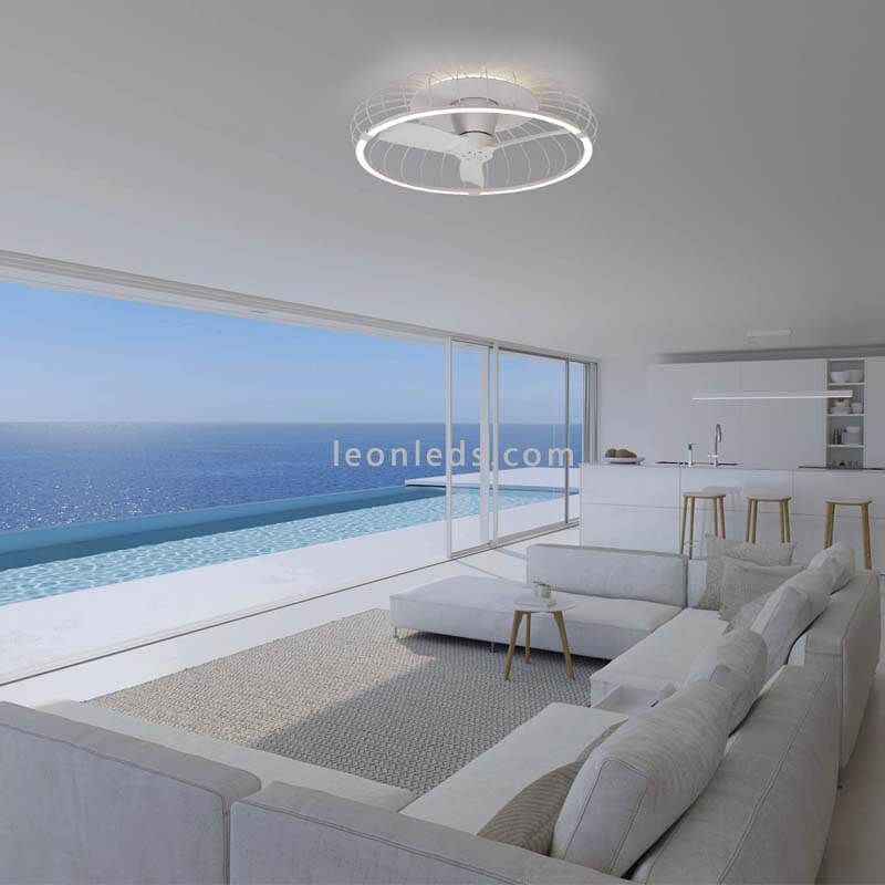 Ce ventilateur au style industriel certain, apportera un nouveau style à votre pièce, puisque ce n'est pas le ventilateur traditionnel à pales, mais vous pouvez l'utiliser comme lumière principale et en même temps il offrira un résultat très décoratif. Parmi ses caractéristiques, nous soulignons la minuterie, la fonction nuit et la fonction inverse qui lui permettent d'être utilisé pendant l'hiver. Les pales tournent dans le sens opposé permettant à la chaleur de la maison de se concentrer et de se répandre dans tout l'espace.