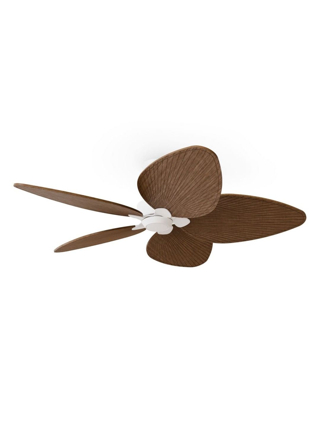 Ventilateur de plafond intérieur/extérieur ALMA L sans éclairage, Ø 132 cm, 5 pales, blanc/bois foncé, 40 W CC, IP44 - Sulion