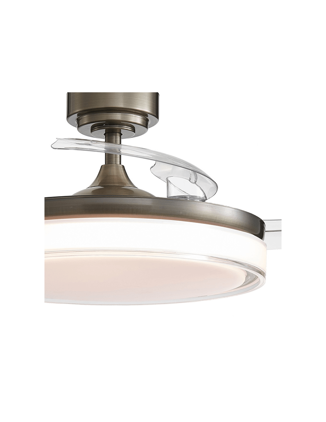 Design et innovation dans le ventilateur LED Aneto en finition cuir avec pales rétractables