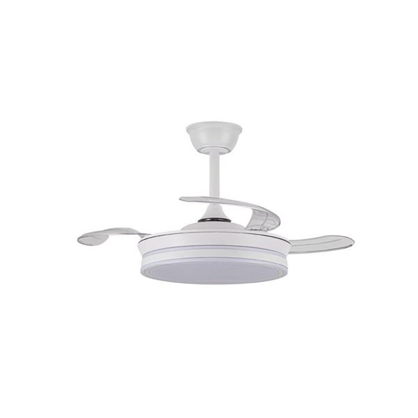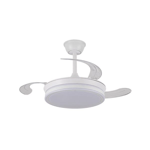 Ventilateur de plafond LED blanc EVO MINI avec pales rétractables et contrôle intelligent