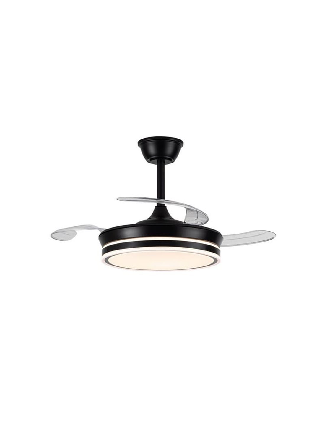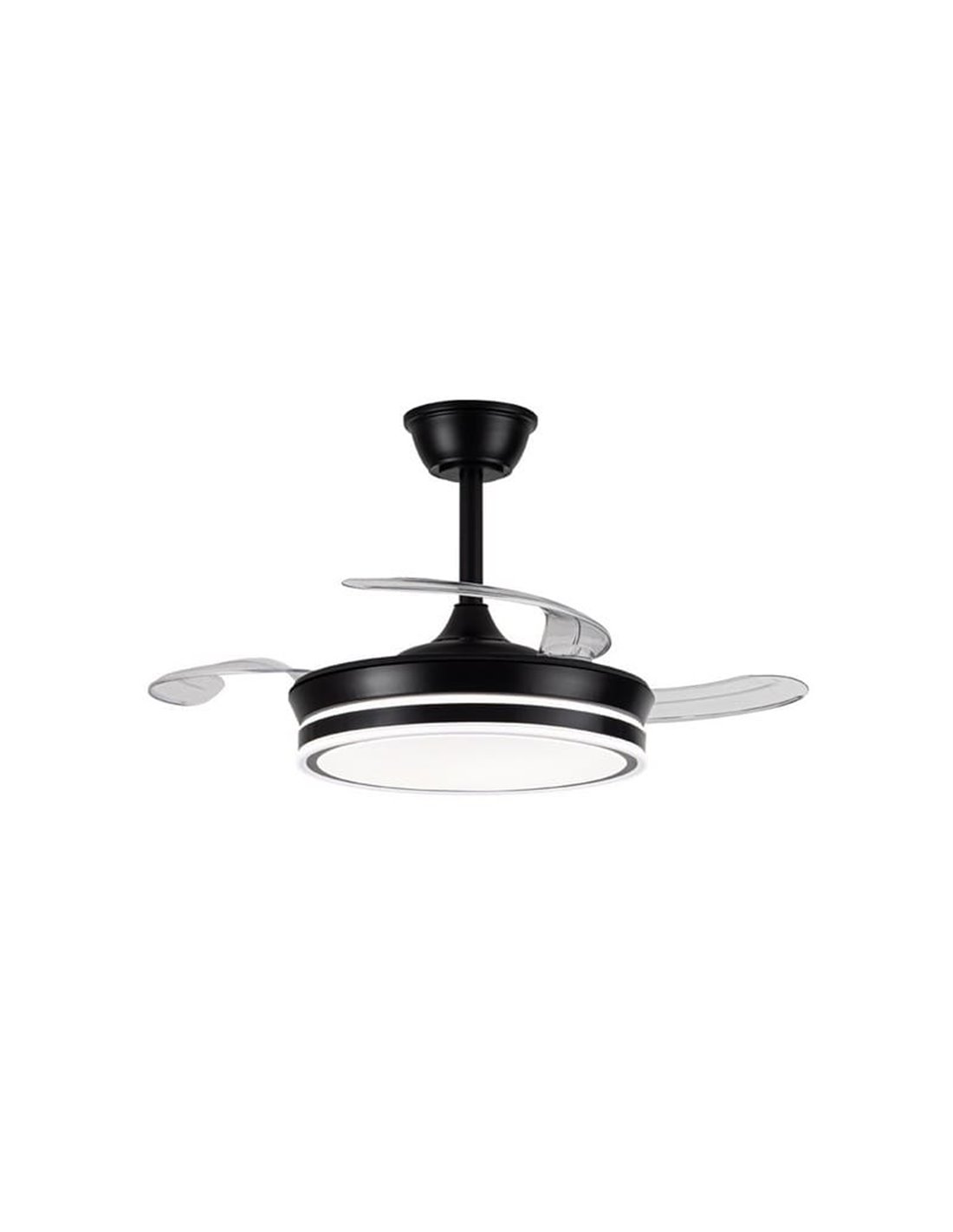 Ventilateur de plafond LED noir EVO MINI avec pales rétractables et contrôle intelligent