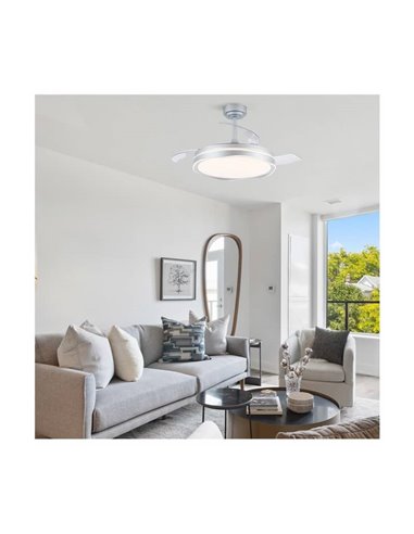 Ventilateur de Plafond LED Pales Rétractables LANDER Mini Argent 46W 5520 Lm CCT