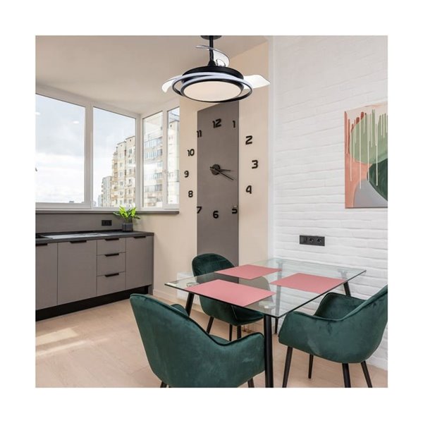 Ce ventilateur est doté de pales ABS rétractables qui se replient lorsqu'elles ne sont pas utilisées, vous permettant d'allumer la lumière principale, l'anneau décoratif ou les deux en même temps . C'est une solution pratique et esthétique qui s'adapte à tout style de décoration intérieure moderne.