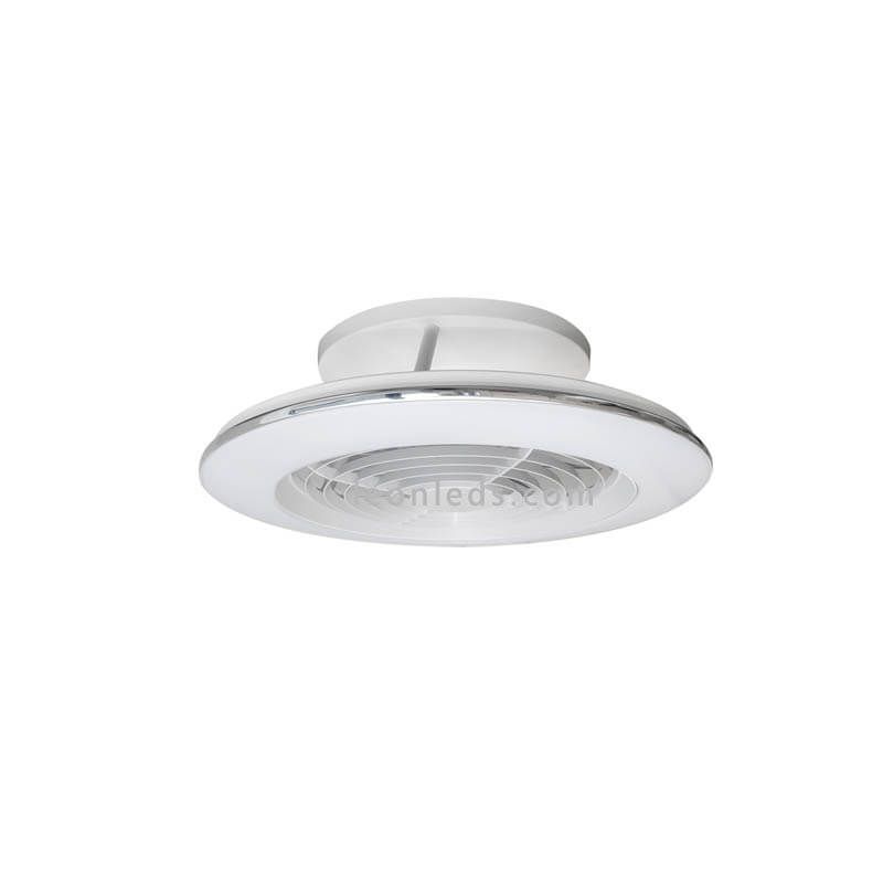 Le ventilateur de plafond LED avec télécommande de la série Alisio Mini par Mantra , peut être contrôlé avec sa télécommande, (Incluse), il dispose d'une fonction nuit et d'une minuterie. C'est un ventilateur à 7 pales en ABS, sa structure en métal blanc et les pales sont en matière ABS. Ce mini ventilateur blanc Alisio comprend des LED d'une puissance de 70W, une intensité lumineuse de 4 100Lm équivalente à 280W d'une ampoule ancienne, l'intensité et la tonalité lumineuse peuvent être réglées par télécommande (il fonctionne par IR).