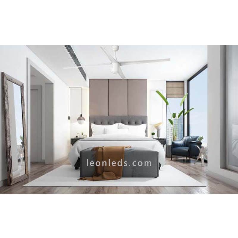 De plus, vous avez la possibilité de sélectionner ce modèle avec la technologie Wiz pour le contrôler avec Alexa, Google Assistant et Siri via Wi-Fi . C'est un ventilateur de taille XL, conçu pour éclairer des pièces de plus de 28m2 comme des salons, des chambres, des couloirs, des cuisines ou des locaux commerciaux. Parmi ses fonctions, nous soulignons la fonction inverse qui peut être utilisée en toute saison, car elle abaisse l'air chaud du haut vers le bas pendant les saisons froides, économisant ainsi les coûts de chauffage. De même, il est valable pour une installation sur un plafond incliné et possède une protection IP20 qui résiste aux corps de plus de 12 mm.