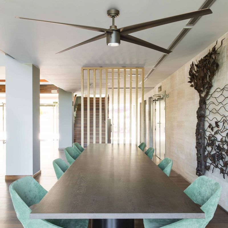 Ce ventilateur de taille XL a été conçu pour des pièces de plus de 28m2. Grand avantage, il permet son installation sur des plafonds en pente et est disponible avec la technologie Wifi (SmartFan) pour le contrôler avec Alexa, Google Assistant et Siri via Wifi et l'application Wiz.