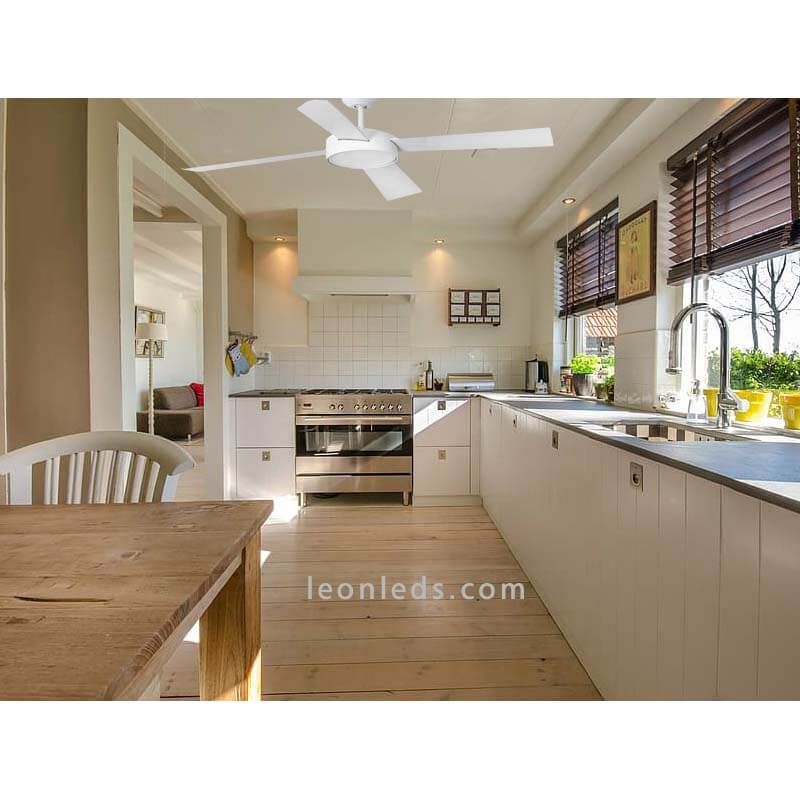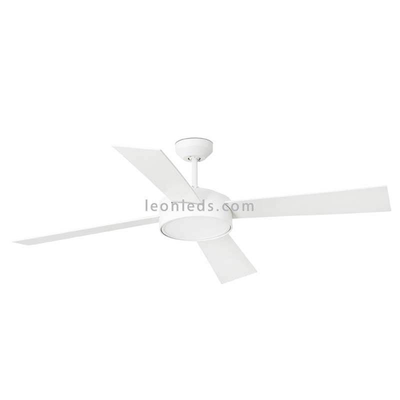 Le ventilateur de plafond LED blanc Hydra présente un design classique avec 4 pales en bois avec une finition blanche et en acier. Ils mettent en avant un diamètre de 135 cm et une hauteur totale de 34 cm.