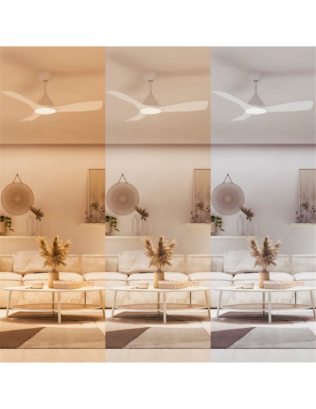 - Puissance efficace : Le ventilateur a une puissance de 28 W et la lumière LED de 24 W, garantissant une faible consommation d'énergie sans compromettre les performances.