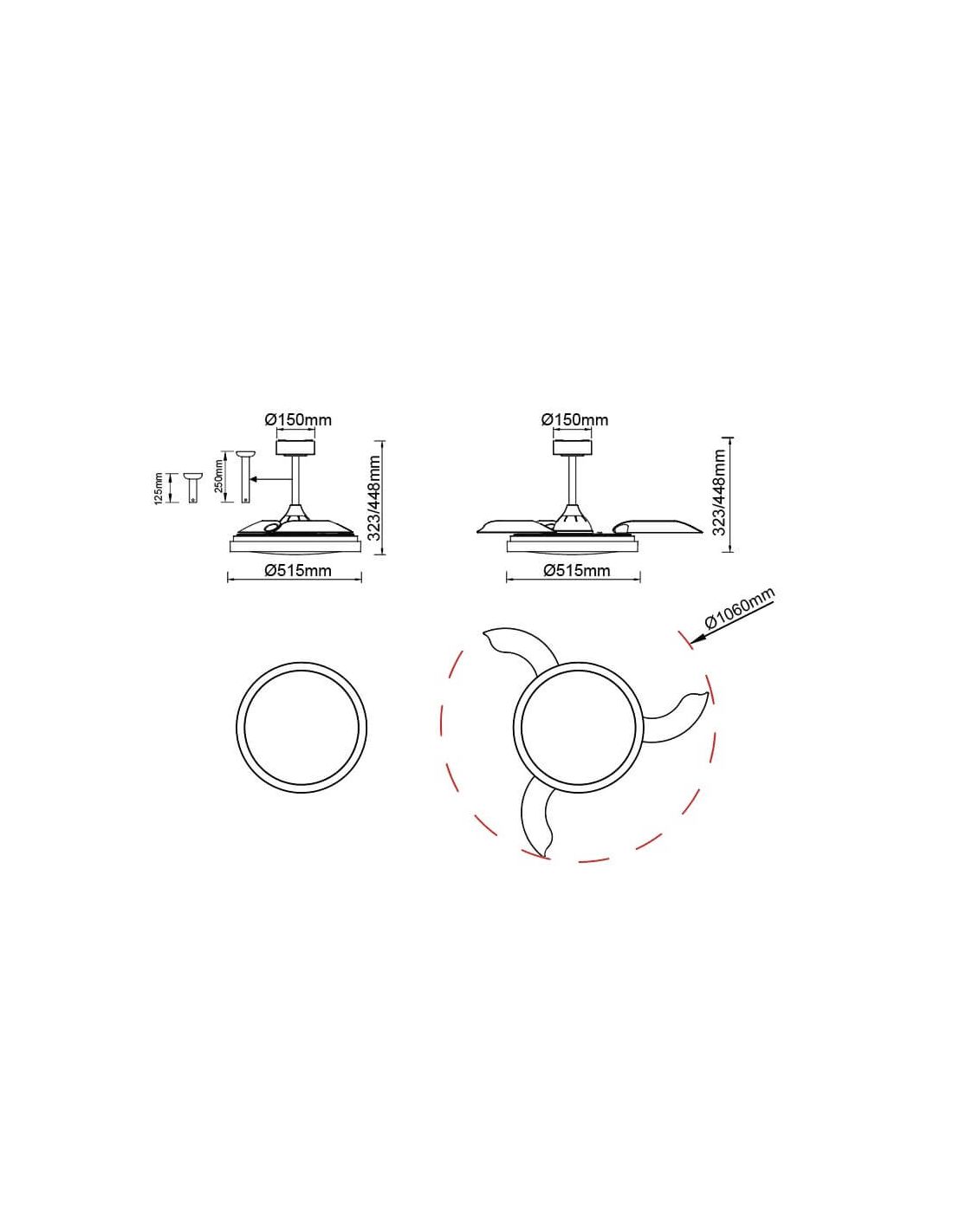 Ventilateur de plafond LED MISTRAL 50W à pales repliables 30W Blanc 2700K-5000K, 3200 Lm